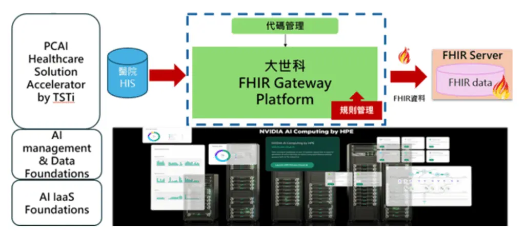除企業客服場景外,大世科亦透過 HPE PCAI 醫療應用服務方案加速器,協助醫療機構由既有 HIS 系統逐步建構符合國際標準的 FHIR 平台。